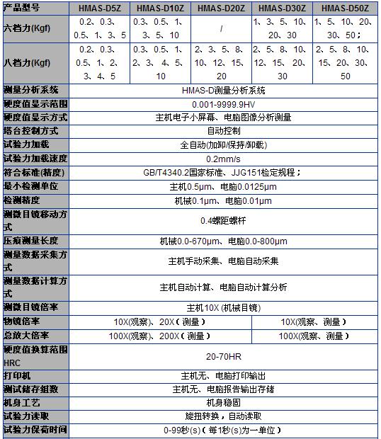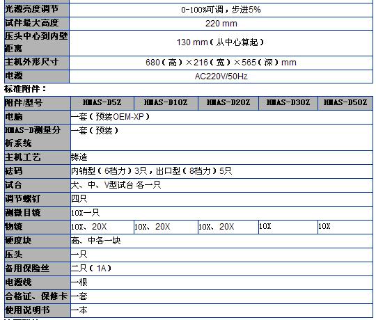 HMAS-D5Z/10Z/20Z/30Z/50Z維氏硬度測量分析系統(tǒng)是本公司推出的第六代光機(jī)電一體化的高新技術(shù)產(chǎn)品,該機(jī)器造型新穎,具有良好的可靠性,可操作性和直觀性,是采用精密機(jī)械技術(shù)、光電技術(shù)、圖形圖像處理技術(shù)和材料硬度分析軟件的新型維氏和努普硬度測試儀器。 性能特點(diǎn) 1、外觀新穎,采用微機(jī)控制自動(dòng)轉(zhuǎn)塔通過軟件執(zhí)行操作,進(jìn)一步實(shí)現(xiàn)測量的智能化。 2、設(shè)備擯棄傳統(tǒng)繁瑣測量步驟,測量方法更簡便 3、設(shè)備自帶打印功能,可將相關(guān)測量參數(shù)打印并保存 4、設(shè)備能對被測材料進(jìn)行拍攝并能對其組織進(jìn)行分析和讀取 5、可調(diào)節(jié)測量光源強(qiáng)弱,可預(yù)置試驗(yàn)力保持時(shí)間、并能切換維氏和努氏試驗(yàn)方法 適用范圍: 熱處理、碳化、淬火硬化層,表面覆層,鋼,有色金屬和微小及薄形零件等.配備努氏壓頭后能測定玻璃、陶瓷、瑪瑙、人造寶石等較脆而又硬材料的努氏硬度. 技術(shù)參數(shù):