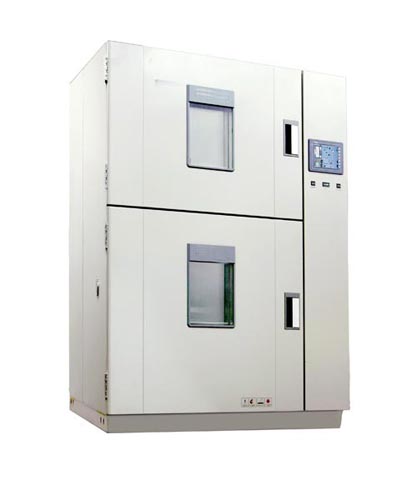 MC028系列溫度沖擊試驗箱  一、產(chǎn)品簡介 用途:適用于對電工、電子和其他軍用設(shè)備在周圍大氣溫度急劇變化條件下的適應(yīng)性試驗。 特點: 1.充分吸收國外同類產(chǎn)品的優(yōu)點,采用兩箱式上下結(jié)構(gòu),上箱體為高溫箱,下箱體為低溫箱。也可根據(jù)用戶要求設(shè)計,制造左、右結(jié)構(gòu)的兩箱式溫度沖擊試驗箱。也可以根據(jù)用戶要求采用單相式(或三箱式)結(jié)構(gòu)設(shè)計。 2.觸摸屏+PLC可編程邏輯控制器,RS485接口。 3.有工作室超溫、壓縮機過載、超壓、油壓超壓、風(fēng)機過載、缺相、壓縮機延時等保護功能,還有若干用戶選配的安全保護功能,如風(fēng)速過低,大門未關(guān)閉等等。 4.可選配遠程監(jiān)控計算機及軟件,上位機實行冗余設(shè)計,可連接PC電腦,也可連接觸摸屏控制器。上位機關(guān)機不影響系統(tǒng)控制。 二、技術(shù)參數(shù):